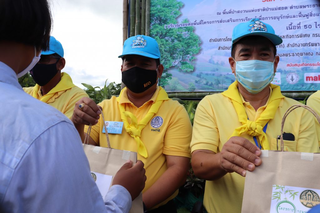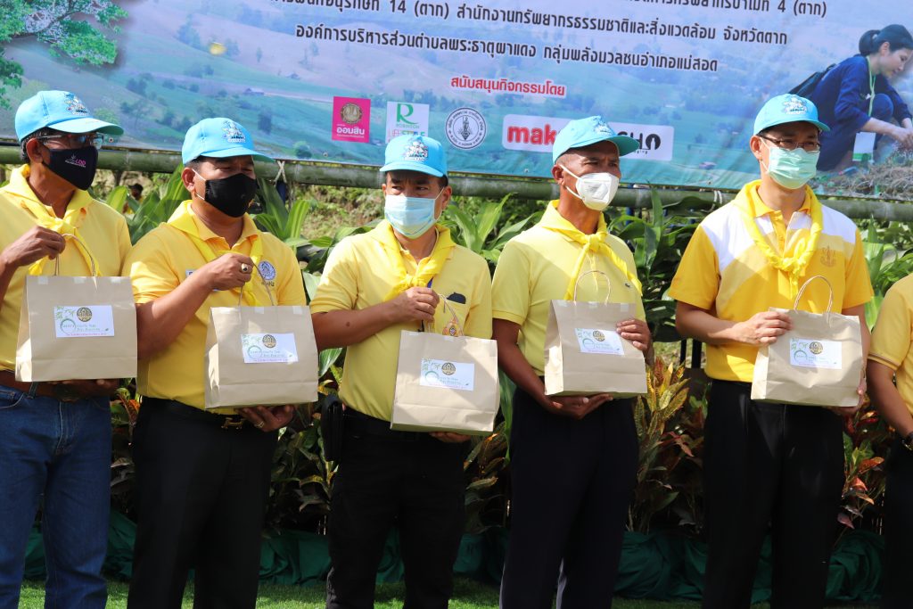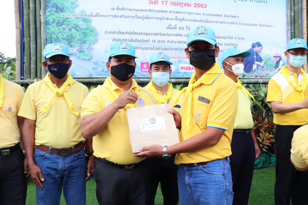 วันศุกร์ที่ 17 กรกฎาคม 2563 เวลา 09.00 น. นายสุพจน์ ภู่รัตนโอภา ผอ.สจป.ที่ 4 (ตาก) นายปัญญารัตน์ รังศิลป์ ผอ.ทสจ.ตาก นายสันธาน มั่นคง ผอ.สบอ.ที่ 14 (ตาก) นายคมน์ เครืออยู่ หัวหน้าโครงการพระราชดำริฯ (เหมืองผาแดง) หัวหน้าส่วนราชการอำเภอแม่สอด ตำรวจ ทหาร นักเรียน ผู้นำชุมชน ข้าราชการ พนักงาน และเจ้าหน้าที่ สจป.ที่ 4 (ตาก) ร่วมกิจกรรม “รวมใจไทย ปลูกต้นไม้ เพื่อแผ่นดิน” สืบสานสู่ 100 ล้านต้น เพื่อเฉลิมพระเกียรติ เนื่องในโอกาสมหามงคลพระราชพิธีบรมราชาภิเษก และฟื้นฟูป่าตามแนวพระราชดำริ ทั้งนี้ได้จัดเตรียมถุงปันสุข ตามโครงการ กรมป่าไม้ ปันสุข รักป่า รักประชาชน เพื่อมอบให้กับประชาชนที่ได้รับความเดือดร้อนจากการระบาดของ COVID-19 โดยครั้งที่ 1 สจป.ที่ 4 (ตาก) ได้จัดเตรียมถุงปันสุขเพื่อมอบให้กับ นักเรียน ประชาชนที่ เข้าร่วมกิจกรรม ณ โครงการส่งเสริมการเรียนรู้เพื่อการอนุรักษ์และฟื้นฟูสิ่งแวดล้อมอันเนื่องมาจากพระราชดำริ อำเภอแม่สอด จังหวัดตาก