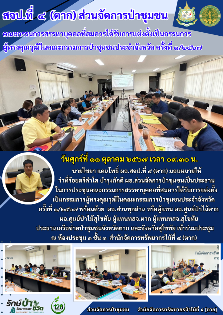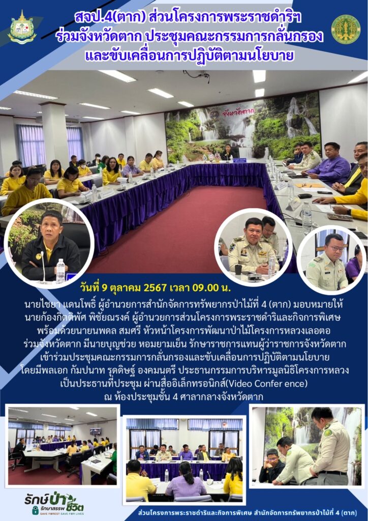 ข่าวกิจกรรมสำนักจัดการทรัพยากรป่าไม้ที่ 4 (ตาก) ประจำเดือน ตุลาคม 2567