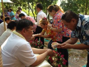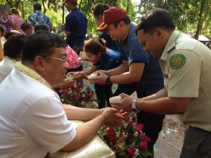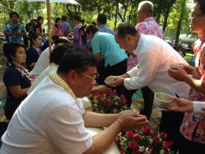 งานประเพณีรดน้ำดำหัวขอพรจากผู้ว่าราชการจังหวัดตาก และรองผู้ว่าราชการจังหวัดตาก20 เมษายน 2017 ใน รวมภาพกิจกรรม by bunjert เมื่อวันที่ 19 เมษายน 2560 เวลา 16.00 น. นายนฤพนธ์ ทิพย์มณฑา ผู้อำนวยการส่วนป้องกันรักษาป่าและควบคุมไฟป่า รักษาราชการแทนผู้อำนวยการสำนักจัดการทรัพยากรป่าไม้ที่ 4 (ตาก) พร้อมด้วยข้าราชการ พนักงาน เจ้าหน้าที่ของสำนักฯ ได้เข้าร่วมงานประเพณีรดน้ำดำหัวขอพรจากผู้ว่าราชการจังหวัด ตาก และรองผู้ว่าราชการจังหวัดตาก เนื่องในวันสงกรานต์ ประจำปี 2560 รวมถึงการแสดงความเคารพนอบน้อมต่อผู้ใหญ่ ขอขมา ขอพรและรดน้ำดำหัว เพื่อความเป็นสิริมงคล ณ บริเวณลานธรรมะ ศาลสมเด็จพระเจ้าตากสินมหาราช ตำบลหนองหลวง อำเภอเมือง จังหวัดตาก