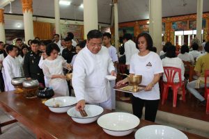 งานสัปดาห์ส่งเสริมพระพุทธศาสนา เนื่องในเทศกาลวันวิสาขบูชา วันสำคัญของโลก ประจำปี 256016 พฤษภาคม 2017 ใน รวมภาพกิจกรรม by bunjert เมื่อวันที่ 10 พฤษภาคม 2560 เวลา 07.00-17.30 น. ข้าราชการ พนักงาน เจ้าหน้าที่ของสำนักจัดการทรัพยากรป่าไม้ที่ 4 (ตาก) เข้าร่วมงานสัปดาห์ส่งเสริมพระพุทธศาสนา เนื่องในเทศกาลวันวิสาขบูชา วันสำคัญสากลของโลก ประจำปี 2560 จังหวัดตาก เพื่อให้พุทธศาสนิกชนได้ร่วมกันประกอบกิจกรรมทางพุทธศาสนาถวายเป็นพุทธบูชา และสืบทอดพระพุทธศาสนาให้มีความเจริญงอกงามและยั่งยืน สืบไป (ในภาคเช้า) พิธีทำบุญตักบาตรอาหาร-คาว พิธีเปิดปฏิบัติธรรม ฟังบรรยายธรรม ปฏิบัติเจริญจิตภาวนา ศาลาการเปรียญวัดมณีบรรพตวรวิหาร (ในภาคค่ำ) ประธานในพิธีเปิดกรวยถวายราชสักการะหน้าพระบรมฉายาลักษณ์สมเด็จพระเจ้าอยู่หัวมหาวชิราลงกรณ์บดินทรเทพวรางกูร และร่วมพิธีเวียนเทียน โดยมีนายเจริญฤทธิ์ สงวนสัตย์ผู้ว่าราชการจังหวัดตาก เป็นประธานในพิธี ณ วัดมณีบรรพตวรวิหาร (พระอารามหลวง) ตำบลระแหงอำเภอเมือง จังหวัดตาก