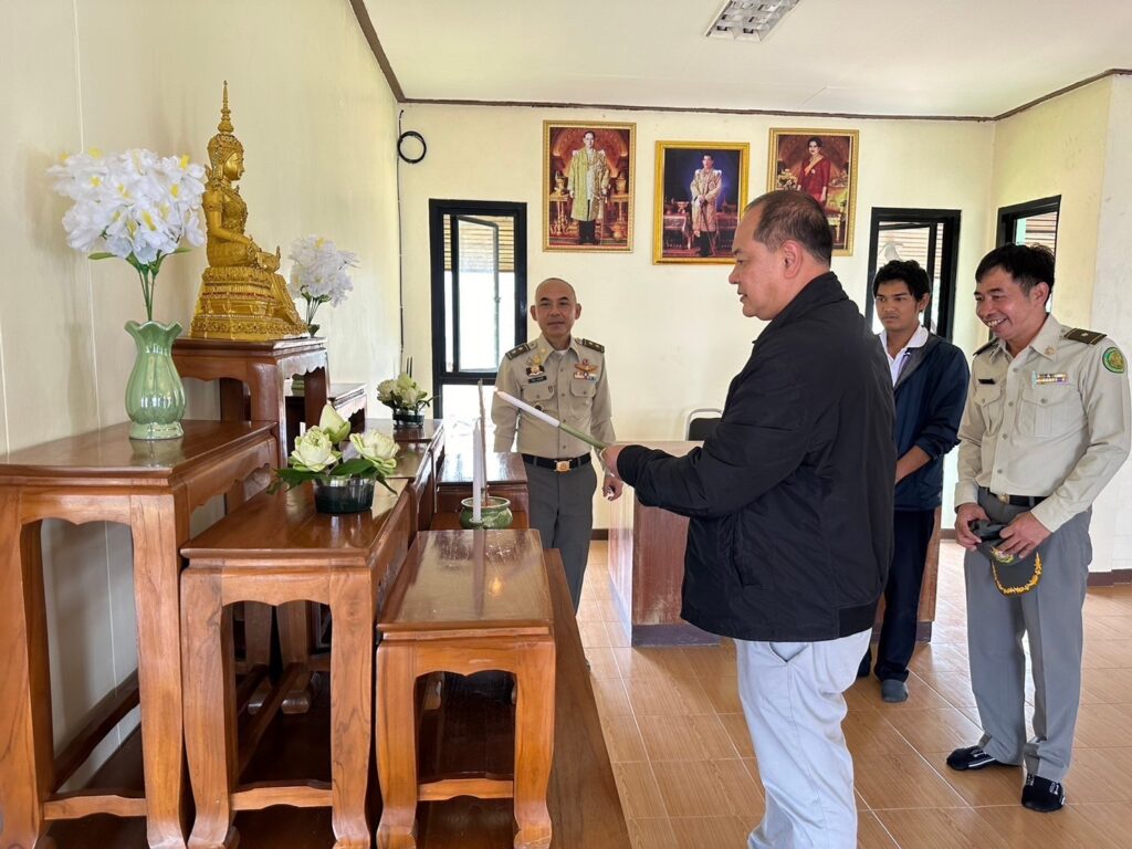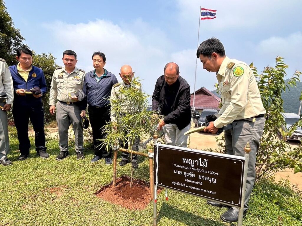 นายไชยา แดนโพธิ์ ผู้อำนวยการสำนักจัดการทรัพยากรป่าไม้ที่ ๔ (ตาก) ผู้อำนวยการส่วนโครงการพระราชดำริและกิจการพิเศษ ผู้อำนวยการส่วนจัดการที่ดินป่าไม้ ผู้อำนวยการส่วนป้องกันรักษาป่าและควบคุมไฟป่า ผู้อำนวยการส่วนการอนุญาต ผู้อำนวยการส่วนส่งเสริมการปลูกป่า ผู้อำนวยการส่วนจัดการป่าชุมชน หัวหน้าศูนย์พัฒนาป่าไม้โครงการหลวงเลอตอ พร้อมข้าราชการในสังกัด ร่วมให้การตอนรับ นายสุรชัย อจลบุญ อธิบดีกรมป่าไม้ นายพัฒน์พงษ์ สมิตติพัฒน์ ผู้ตรวจราชการกรม ทำหน้าที่ผู้อำนวยการสำนักโครงการพระราชดำริและกิจการพิเศษ ตรวจเยี่ยม การจัดตั้งฐานปฏิบัติการป้องกันรักษาป่าและควบคุมไฟป่า เพื่อป้องกันการบุกรุกและการเผาป่า เพื่อการบูรณาการทำงานร่วมกันระหว่างโครงการหลวงเลอตอ ทหาร ตำรวจ ชุมชนในพื้นที่ และอำนวยความสะดวกของกำลังเจ้าหน้าที่ ณ โครงการพัฒนาป่าไม้โครงการหลวงเลอตอ อำเภอแม่ระมาด จังหวัดตาก และลงพื้นที่ตรวจติดตามการดำเนินงาน ในพื้นที่ศูนย์พัฒนาโครงการหลวงเลอตอได้มอบแนวทางการดำเนินโครงการปลูกป่าเฉลิมพระเกียรติพระบาทสมเด็จพระเจ้าอยู่หัวเนื่องในโอกาสมหามงคลเฉลิมพระชนมพรรษา ๗๒ พรรษา ในพื้นที่โครงการหลวงเลอตอ ๗๒๐ ไร่ พร้อมรับมอบนโยบายและข้อสั่งการ กำชับให้เจ้าหน้าที่บูรณาการทำงานร่วมกันในระดับจังหวัดถึงระดับชุมชนเพื่อส่งเสริมการปลูกป่า และโอกาสนี้อธิบดีกรมป่าไม้ได้ให้เกียรติในการอัญเชิญพระพุทธรูป “พระพุทธมงคลพรัชชัยพัฒนามหาบพิต” ประดิษฐาน ณ โต๊ะหมู่บูชา เพื่อเป็นสิริมงคลแก่ผู้ปฏิบัติงาน พร้อมร่วมกัน “ปลูกต้นพญาไม้” ณ โครงการพัฒนาป่าไม้โครงการหลวงเลอตอ อำเภอแม่ระมาด จังหวัดตาก และเดินทางเข้าเยี่ยมและให้กำลังใจ นายสำราญ อาชาประดิษฐ์ ผู้ใหญ่บ้านเลอตอ เนื่องด้วยเป็นประธานเครือข่ายความร่วมมือในการควบคุมไฟป่าบ้านเลอตอ หมู่ ๑๓ ตำบลแม่ตื่น อำเภอแม่ระมาด จังหวัดตาก โดยได้เข้าตรวจรักษาตัวที่โรงพยาบาลแม่ระมาด อำเภอแม่ระมาด จังหวัดตาก