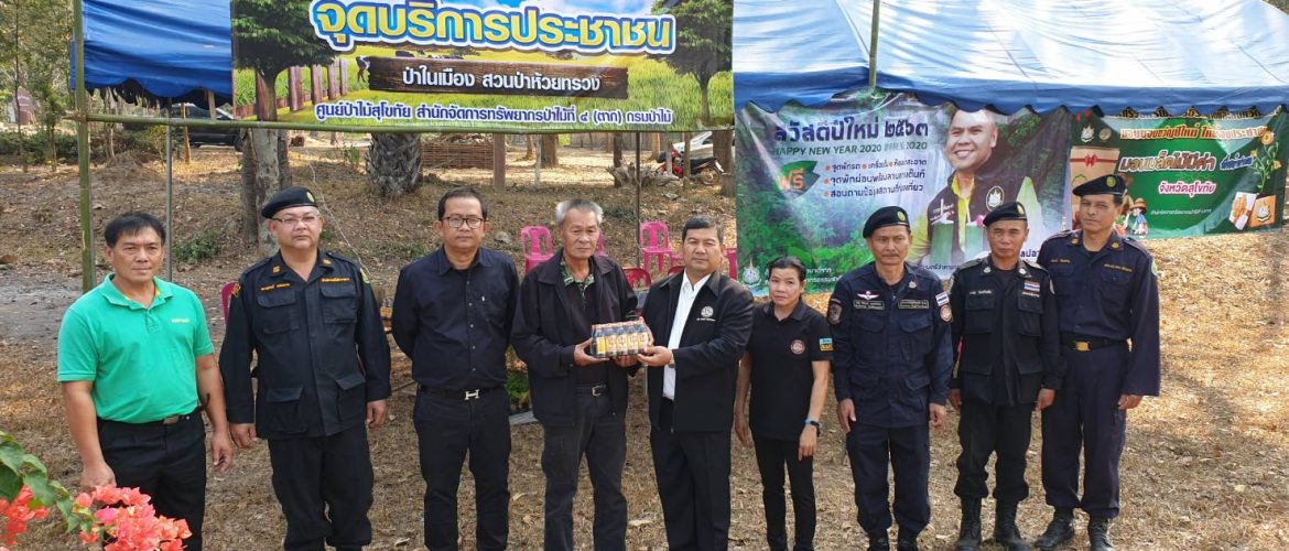 วันอาทิตย์ที่ 29 ธันวาคม 2562 เวลา 11.00 น. นายสุพจน์ ภู่รัตนโอภา ผอ.สจป.ที่ 4 (ตาก) พร้อมด้วยนายสมศักดิ์ ตะเภา เจ้าพนักงานป่าไม้อาวุโส ผู้แทนผอ.ส่วนจัดการป่าไม้ ได้ออกตรวจเยี่ยมจุดบริการประชาชน ป่าในเมือง สวนป่าห้วยทรวง เพื่ออำนวยความสะดวกแก่ผู้เดินทางช่วงเทศกาลปีใหม่ และมอบเครื่องดื่มพร้อมเมล็ดพันธุ์ไม้ เพื่อเป็นของขวัญปีใหม่แก่ผู้เดินทางและเจ้าหน้าที่ที่ปฏิบัติงานประจำจุดบริการ ณ สวนป่าห้วยทรวง หมู่ที่ 4 ตำบลแม่สำ อำเภอศรีสัชนาลัย จังหวัดสุโขทัย