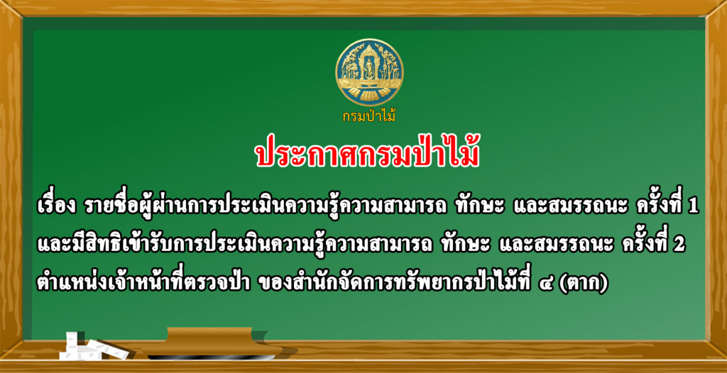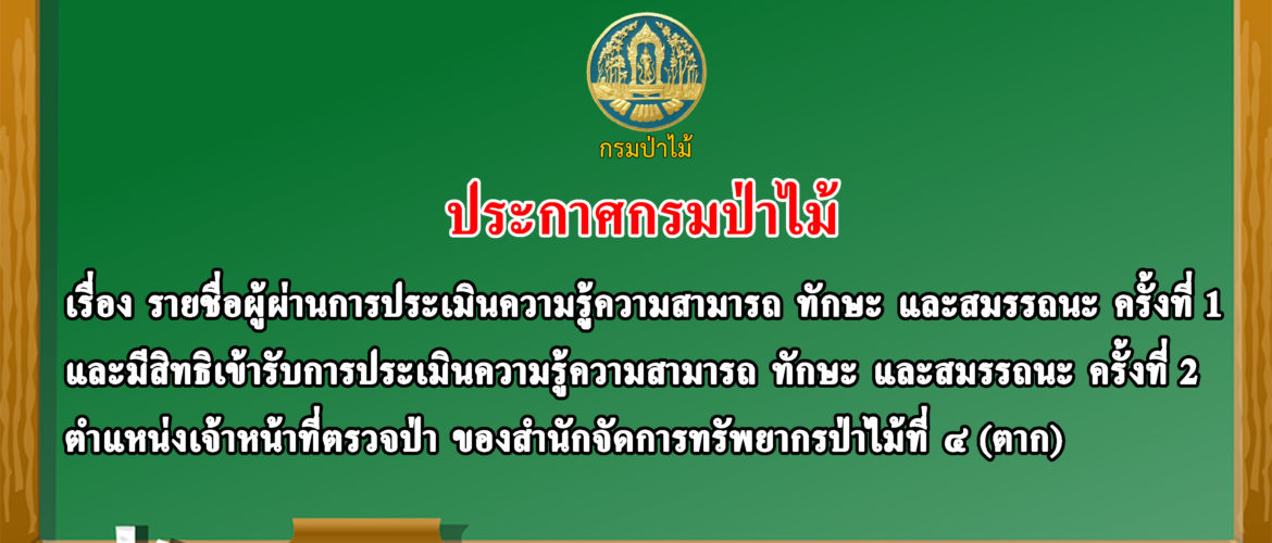ประกาศกรมป่าไม้ เรื่อง รายชื่อผู้ผ่านการประเมินความรู้ความสามารถ ทักษะ และสมรรถนะ ครั้งที่ 1 และมีสิทธิเข้ารับการประเมินความรู้ความสามารถ ทักษะ และสมรรถนะ ครั้งที่ 2 ตำแหน่งเจ้าหน้าที่ตรวจป่า ของสำนักจัดการทรัพยากรป่าไม้ที่ 4 (ตาก)30 พฤษภาคม 2022 ใน รวมภาพกิจกรรม by bunjert ประกาศกรมป่าไม้ เรื่อง รายชื่อผู้ผ่านการประเมินความรู้ความสามารถ ทักษะ และสมรรถนะ ครั้งที่ 1 และมีสิทธิเข้ารับการประเมินความรู้ความสามารถ ทักษะ และสมรรถนะ ครั้งที่ 2 ตำแหน่งเจ้าหน้าที่ตรวจป่า ของสำนักจัดการทรัพยากรป่าไม้ที่ 4 (ตาก)
