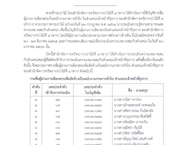 ประกาศกรมป่าไม้ เรื่อง บัญชีรายชื่อผู้ผ่านการเลือกสรรเพื่อจัดจ้าง เป็นพนักงานราชการทั่วไป ตำแหน่งเจ้าหน้าที่ธุรการ ของสำนักจัดการทรัพยากรป่าไม้ที่ 4 (ตาก)25 มกราคม 2023 ใน รวมภาพกิจกรรม by numchai ประกาศกรมป่าไม้ เรื่อง บัญชีรายชื่อผู้ผ่านการเลือกสรรเพื่อจัดจ้าง เป็นพนักงานราชการทั่วไป ตำแหน่งเจ้าหน้าที่ธุรการ ของสำนักจัดการทรัพยากรป่าไม้ที่ 4 (ตาก)ดาวน์โหลด
