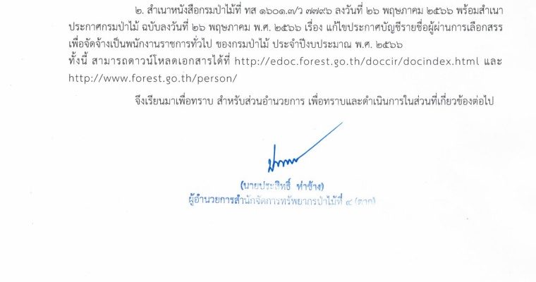 ประกาศกรมป่าไม้ เรื่อง บัญชีรายชื่อผู้ผ่านการเลือกสรรเพื่อจัดจ้างเป็นพนักงานราชการทั่วไป ของกรมป่าไม้ ประจำปีงบประมาณ พ.ศ. 256631 พฤษภาคม 2023 ใน รวมภาพกิจกรรม by numchai ที่-ทส-1617.11-4714-ลว-30-พ.ค.66-เรื่อง-ขอส่งสำเนาหนังสืดาวน์โหลด