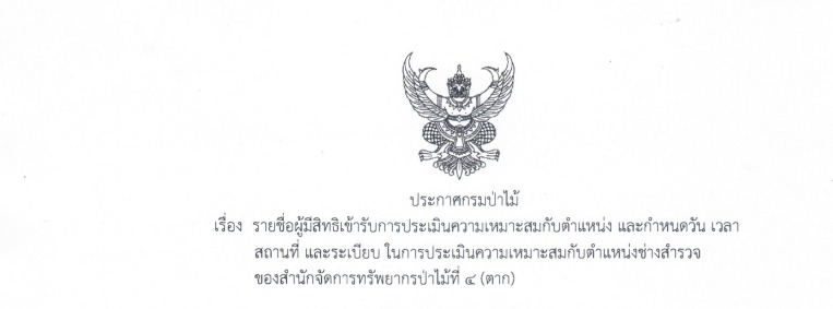 ประกาศกรมป่าไม้ เรื่องรายชื่อผู้มีสิทธิเข้ารับการประเมินความเหมาะสมกับตำแหน่ง และกำหนดวัน เวลาสถานที่ และระเบียบ ในการประเมินความเหมาะสมกับตำแหน่งช่างสำรวจ ของสำนักจัดการทรัพยากรป่าไม้ที่ ๔ (ตาก)4 สิงหาคม 2023 ใน รวมภาพกิจกรรม by numchai ประกาศรายชื่อผู้มีสิทธิสอบสัมภาษณ์-ตำแหนดาวน์โหลด