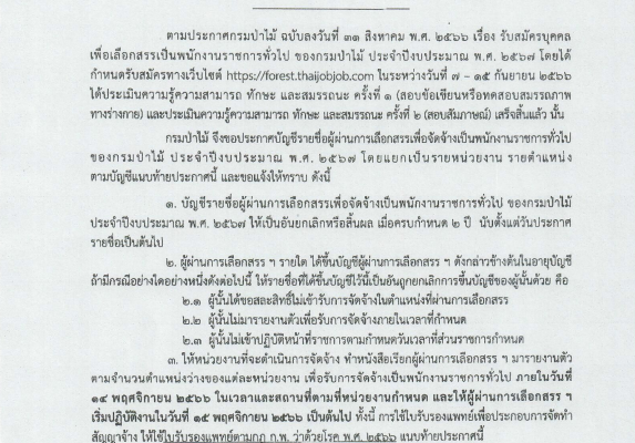 ประกาศกรมป่าไม้ เรื่อง บัญชีรายชื่อผู้ผ่านการเลือกสรรเพื่อจัดจ้างเป็นเป็นพนักงานราชทั่วไป ของกรมป่าไม้ ประจำปีงบประมาณ พ.ศ. ๒๕๖๗ ของสำนักจัดการทรัพยากรป่าไม้ที่ ๔ (ตาก)13 พฤศจิกายน 2023 ใน รวมภาพกิจกรรม by numchai