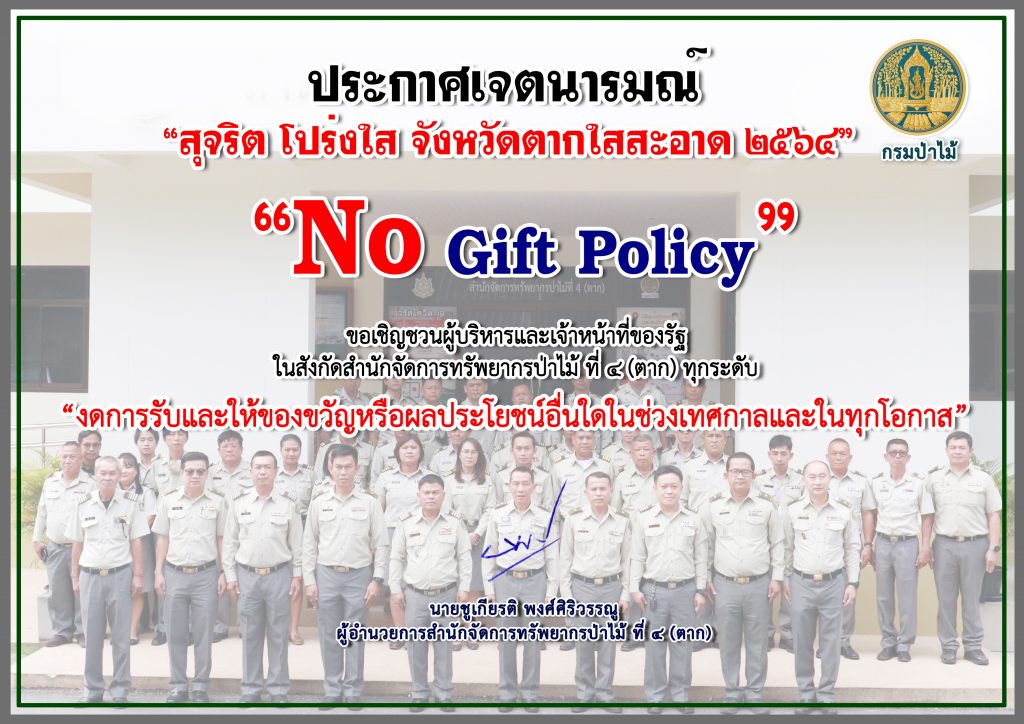 สำนักจัดการทรัพยากรป่าไม้ ที่ ๔ (ตาก) ขอส่งประกาศเจตนารมณ์ “สุจริต โปร่งใส จังหวัดตาก ใสสะอาด 2564” พร้อมสำเนาประกาศจังหวัดตาก ลงวันที่ 8 มกราคม พ.ศ. 2564 เรื่อง การเสริมสร้างวัฒนธรรมจังหวัดตาก “สุจริต โปร่งใส จังหวัดตากใสสะอาด” และสำเนาประกาศจังหวัดตาก ลงวันที่ 8 มกราคม พ.ศ. 2564 เรื่อง นโยบายต่อต้านการรับสินบน เพื่อป้องกันการทุจริตและประพฤติมิชอบ