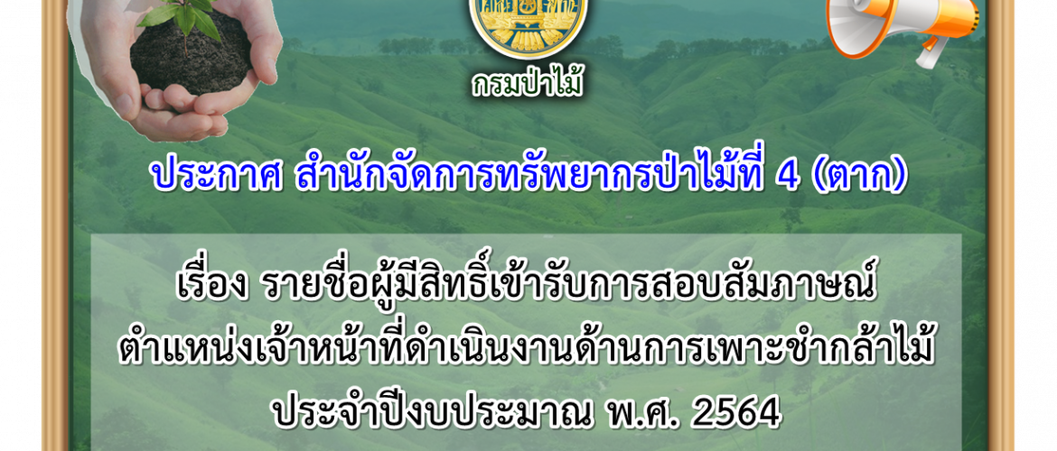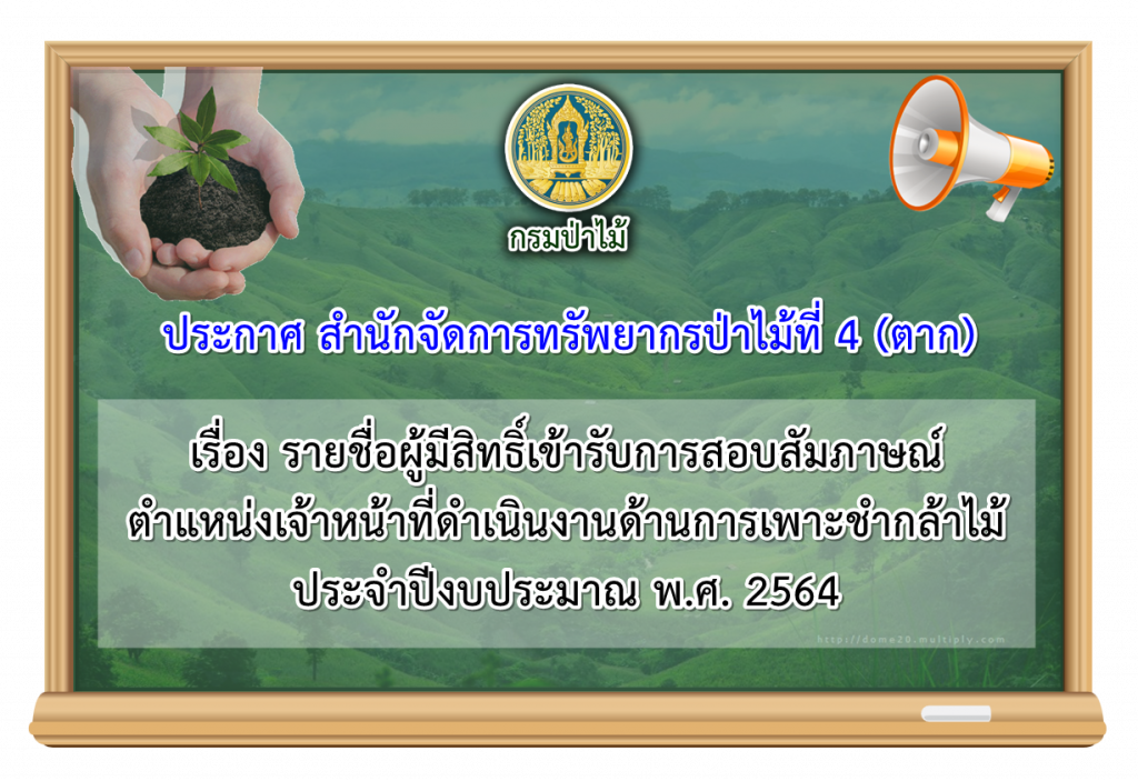 ประกาศ สำนักจัดการทรัพยากรป่าไม้ที่ 4 (ตาก) เรื่อง รายชื่อผู้มีสิทธิ์เข้ารับการสอบสัมภาษณ์ ตำแหน่งเจ้าหน้าที่ดำเนินงานด้านการเพาะชำกล้าไม้ ประจำปีงบประมาณ พ.ศ. 2564 สำนักจัดการทรัพยากรป่าไม้ที่ 4 (ตาก)22 กันยายน 2020 ใน รวมภาพกิจกรรม by Noo_Downy ประกาศ สำนักจัดการทรัพยากรป่าไม้ที่ 4 (ตาก)เรื่อง รายชื่อผู้มีสิทธิ์เข้ารับการสอบสัมภาษณ์ ตำแหน่งเจ้าหน้าที่ดำเนินงานด้านการเพาะชำกล้าไม้ ประจำปีงบประมาณ พ.ศ. 2564 สำนักจัดการทรัพยากรป่าไม้ที่ 4 (ตาก)ดาวน์โหลด