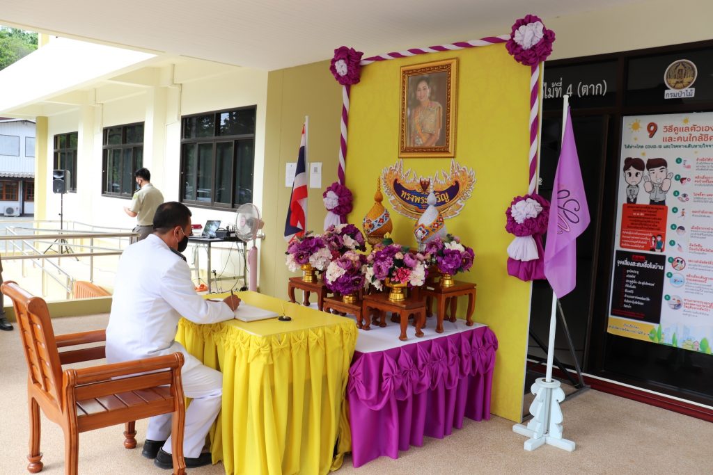 วันพุธ ที่ 3 มิถุนายน 2563 เวลา 08.30 น. สํานักจัดการทรัพยากรป่าไม้ที่ 4 (ตาก) จัดกิจกรรมเฉลิมพระเกียรติเนื่องในโอกาสวันเฉลิมพระชนมพรรษาสมเด็จพระนางเจ้าฯ พระบรมราชินี 3 มิถุนายน 2563 ได้จัดสถานที่ลงนามถวายพระพรชัยมงคล นำโดยนายสุพจน์ ภู่รัตนโอภา ผู้อำนวยการสำนักจัดการทรัพยากรป่าไม้ที่ 4 (ตาก) พร้อมด้วยผู้อำนวยการส่วนอำนวยการ ผู้อำนวยการส่วนจัดการป่าไม้ ผู้อำนวยการส่งเสริมการป่าไม้ ผู้อำนวยการส่วนวิชาการและกฎหมาย ผู้อำนวยการศูนย์ป่าไม้ตาก ข้าราชการพนักงานและเจ้าหน้าที่ในสังกัด ร่วมลงนามถวายพระพรชัยมงคลโดยพร้อมเพียงกัน ณ บริเวณหน้าอาคารสํานักจัดการทรัพยากรป่าไม้ที่ 4 (ตาก)