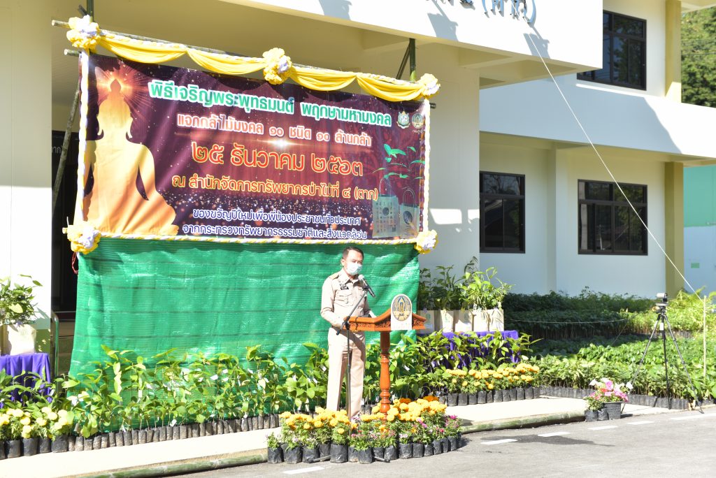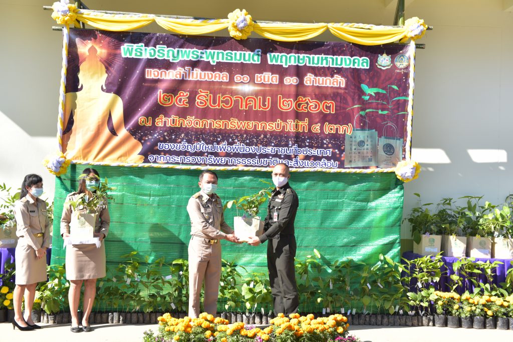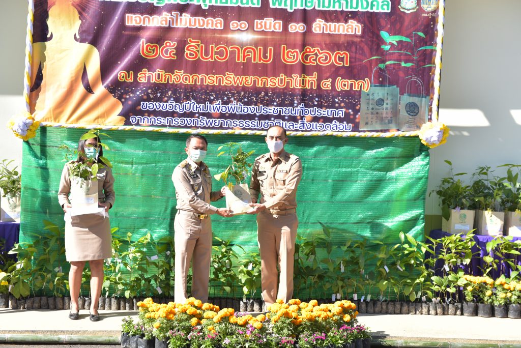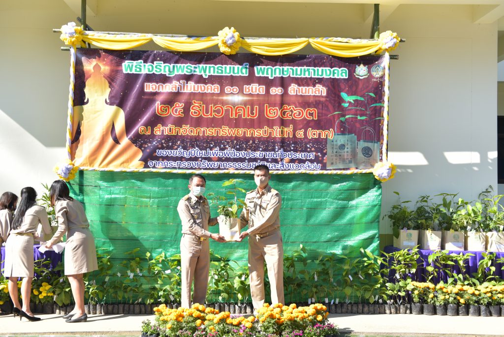 วันศุกร์ที่ 25 ธันวาคม 2563 เวลา 08.30 น. นายชูเกียรติ พงศ์ศิริวรรณ ผอ.สจป.ที่ 4 (ตาก) พร้อมด้วยผอ.ส่วนทุกส่วน ข้าราชการ พนักงาน และเจ้าหน้าที่ในสังกัด จัดงานโครงการพิธีเจริญพระพุทธมนต์ “พฤกษามหามงคล” ซึ่งได้แจกกล้าไม้มงคล จำนวน 10 ชนิด เช่น มะค่าโมง สัก พะยูง ไผ่ซางนวล มะขาม ยางนา ราชพฤกษ์ และประดู่ เป็นต้น สำหรับเป็นของขวัญส่งมอบความสุขให้กับประชาชน ในวันขึ้นปีใหม่ พ.ศ. 2564 โดยมีนายพงศ์รัตน์ ภิรมย์รัตน์ ผู้ว่าราชการจังหวัดตาก เป็นประธานในพิธี ณ สำนักจัดการทรัพยากรป่าไม้ที่ 4 (ตาก) อ.เมืองตาก จ.ตาก