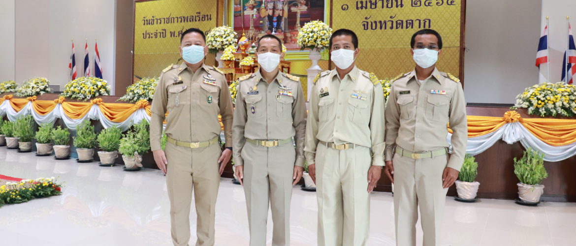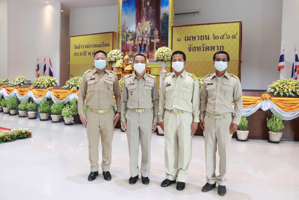 วันพฤหัสบดีที่ 1 เมษายน 2564 เวลา 08.00 น. นายชูเกียรติ พงศ์ศิริวรรณ ผอ.สจป.ที่ 4 (ตาก) พร้อมด้วยข้าราชการในสังกัด เข้าร่วมงานวันข้าราชการพลเรือนจังหวัดตาก ประจำปี พ.ศ. 2564 โดยมีนายพงศ์รัตน์ ภิรมย์รัตน์ ผู้ว่าราชการจังหวัดตาก เป็นประธานในพิธี ณ หอประชุมจังหวัดตาก ศาลากลางจังหวัดตาก อ.เมืองตาก จ.ตาก