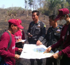 หน่วยป้องกันรักษาป่าที่ ตก 2 (ขะเนจื้อ) ลาดตระเวนตรวจจุดเสี่ยงเกิดไฟป่าและร่วมกับหน่วยส่งเสริมควบคุมไฟป่าแม่ระมาด ,หน่วยส่งเสริมควบคุมไฟป่าจังหวัดสุรินทร์,เขตรักษาพันธุ์สัตว์ป่าแม่ตื่น,ทหารร้อย ร.413จุดตรวจบ้านพะละ ,อส.อ.แม่ระมาดและชรบ.บ้านขะเนจื้อ บ้านหนองหลวง เข้าควบคุมไฟทำแนวกันไฟและดับไฟบริเวณบ้านหนองหลวง หมู่13 ตำบลขะเนจื้อ อำเภอแม่ระมาด จังหวัดตาก (เพิ่มเติมรูปภาพ)
