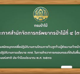 ประกาศสำนักจัดการทรัพยากรป่าไม้ที่ 4 (ตาก) เรื่อง รายชื่อผู้ได้รับการคัดเลือกเพื่อปฏิบัติงานตามโครงการจ้างลูกจ้างผู้ช่วยงานเจ้าหน้าที่ป่าไม้ในการปฏิบัติงานตามนโยบาย คทช. ในการสำรวจการครอบครองที่ดินในพ […]