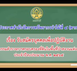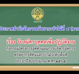 ประกาศสำนักจัดการทรัพยากรป่าไม้ที่ 4 (ตาก)เรื่อง รับสมัครบุคคลเพื่อปฏิบัติงานกิจกรรมโครงการจัดทำแผนการบริหารจัดการทรัพยากรที่ดินและป่าไม้ระดับพื้นที่ ประจำปีงบประมาณ พ.ศ. 2565