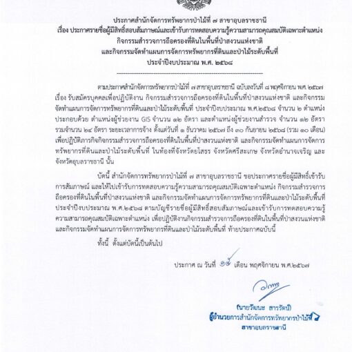 เผยแพร่แล้ว 15 พฤศจิกายน 2024 ประกาศรายชื่อผู้มีสิทธิ์สอบสัมภาษณ์และเข้ารับการทดสอบความรู้ความสามารถคุณสมบัติเฉพาะตำแหน่ง กิจกรรมสำรวจการถือครองที่ดินในพื้นที่ป่าสงวนแห่งชาติ และกิจกรรมจัดทำแผนการจ […]