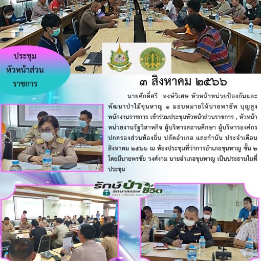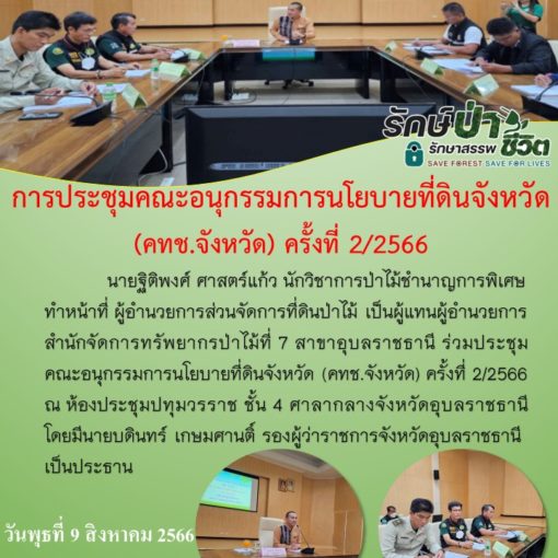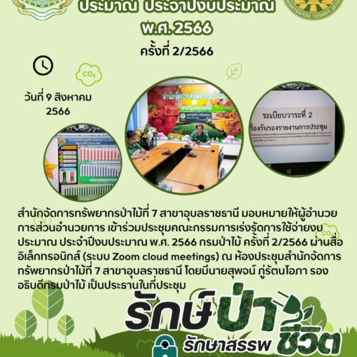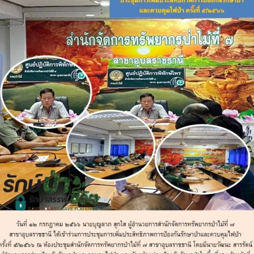 วันที่ ๘ สิงหาคม ๒๕๖๖ นายบุญลาภ สุกใส ผู้อำนวยการสำนักจัดการทรัพยากรป่าไม้ที่ ๗ สาขาอุบลราชธานี พร้อมด้วยผอ.ส่วนทุกส่วน ผอ.ศูนย์ป่าไม้ และเจ้าหน้าที่ ร่วมประชุมผู้บริหารกรมป่าไม้ ครั้งที่ ๓/๒๕๖๖ ผ่านระบบ Video Conference ณ ห้องประชุมสำนักจัดการทรัพยากรป่าไม้ที่ ๗ สาขาอุบลราชธานี โดยมีนายสุรชัย อจลบุญ อธิบดีกรมป่าไม้ เป็นประธาน