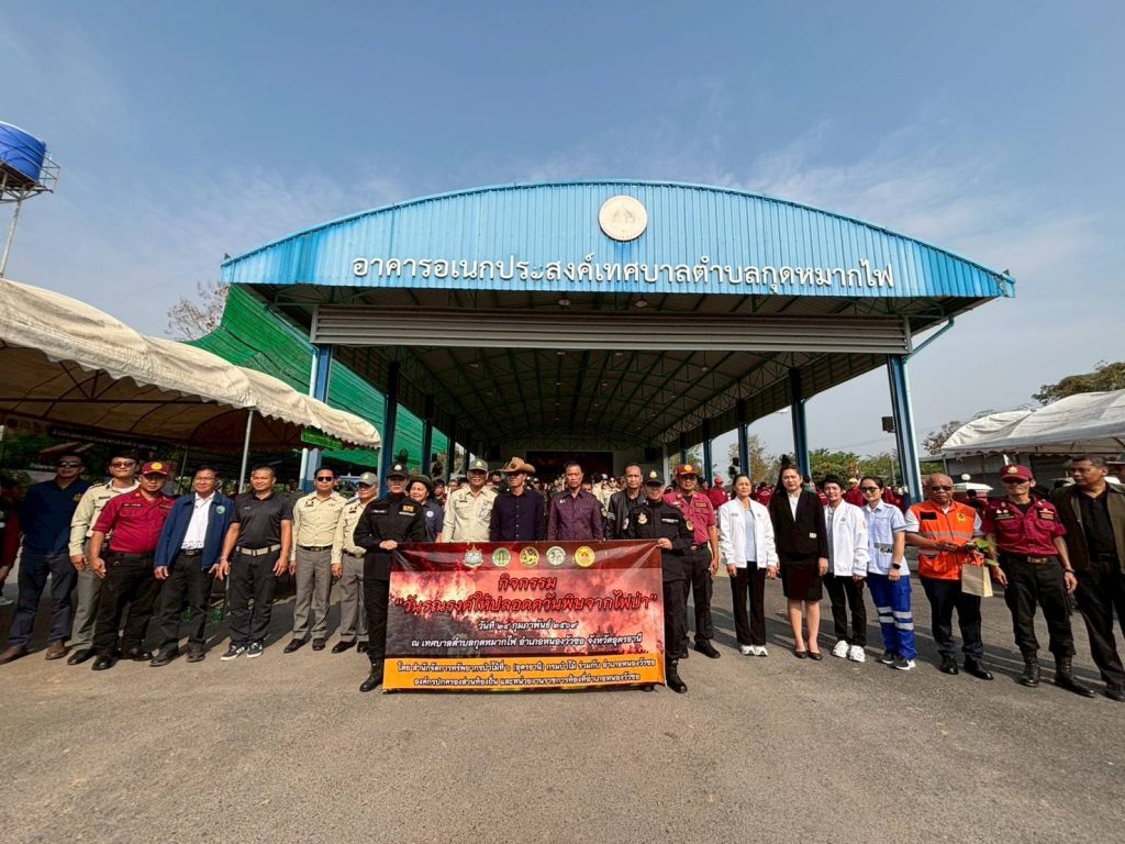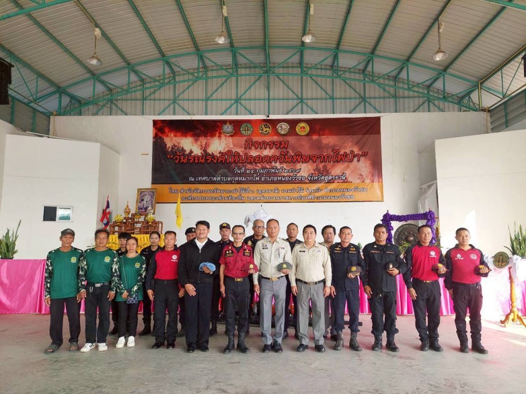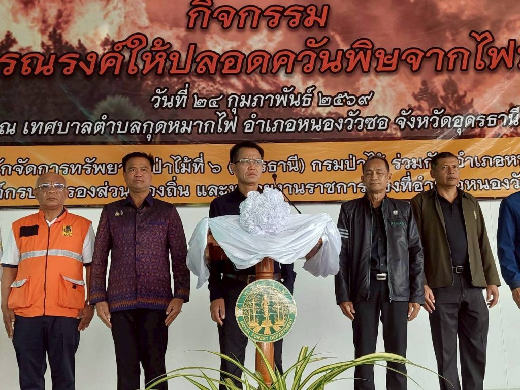 ๒๔ กุมภาพันธ์ ๒๕๖๙ สำนักจัดการทรัพยากรป่าไม้ที่ ๖ (อุดรธานี) โดยนายสราวุฒิ บุญเกื้อ ผู้อำนวยการสำนักจัดการทรัพยากรป่าไม้ที่ ๖ (อุดรธานี) จัดกิจกรรม “วันรณรงค์ให้ปลอดควันพิษจากไฟป่า” ประจำปี พ.ศ ๒๕๖๙ ณ เทศบาลตำบลกุดหมากไฟ อำเภอหนองวัวซอ จังหวัดอุดรธานี ได้รับเกียรติจากนายอิทธิพล สุยะลา นายอำเภอหนองวัวซอ เป็นประธานในพิธีเปิดกิจกรรม โดยมีหน่วยงานราชการ ภาครัฐ ภาคเอกชน องค์กรปกครองส่วนท้องถิ่น กำนันผู้ใหญ่บ้าน นักเรียน นักศึกษา และประชาชน เข้าร่วมกิจกรรม จำนวน ๕๐๐ คน ทั้งนี้ กิจกรรมวันรณรงค์ให้ปลอดควันพิษจากไฟป่า เป็นกิจกรรมที่สำนักจัดการทรัพยากรป่าไม้ที่ ๖ (อุดรธานี) จัดเป็นประจำทุกปี เพื่อรณรงค์และสร้างความตระหนักให้ประชาชนและทุกภาคส่วนได้ทราบถึงผลกระทบที่เกิดจากการเผาป่า ซึ่งทำให้เกิดหมอกควันและฝุ่นละอองขนาดเล็ก (PM 2.5) ซึ่งเป็นอันตรายต่อสุขภาพอนามัย โดยภายในกิจกรรม มีการจัดนิทรรศการของศูนย์ส่งเสริมการควบคุมไฟป่าอุดรธานี ศูนย์ฝึกอบรมการป้องกันและควบคุมไฟป่าอุดรธานี ป่านันทนาการน้ำตกหินตั้ง และป่านันทนาการถ้ำสิงห์ และมีการแจกกล้าไม้ให้ผู้เข้าร่วมกิจกรรมนำไปปลูกเพื่อเพิ่มปริมาณพื้นที่สีเขียวเป็นปอดให้ชุมชนต่อไป
