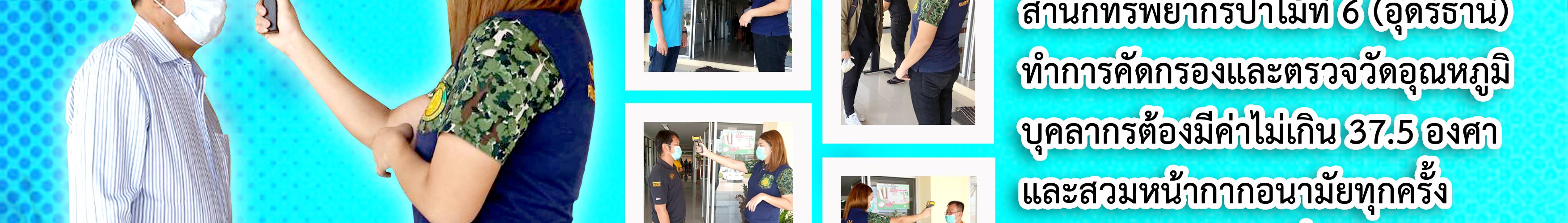 รายการนี้ถูกเผยแพร่ใน บทความ on 31 มีนาคม 2020 (updated 2132 days ago) มาตรการป้องกันการ โคโรนา Covid – 19 สำนักทรัพยากรป่าไม้ที่ 6 (อุดรธานี) ทำการคัดกรองและตรวจวัดอุณหภูมิบุคลากรต้องมีค่าไม่เกิน 37.5 องศา และสวมหน้ากากอนามัยทุกครั้ง ก่อนเข้าสำนักงาน เพื่อป้องกันการแพร่เชื้อไวรัสโคโรนา Covid – 19