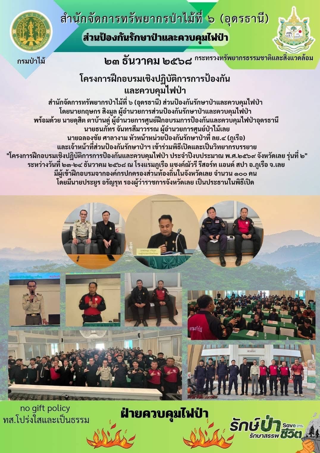 วันอังคารที่ 23 ธันวาคม 2568 สำนักจัดการทรัพยากรป่าไม้ที่ 6 (อุดรธานี) โดยนายกฤษกร สิงมูล ผู้อํานวยการส่วนป้องกันรักษาป่าและควบคุมไฟป่า นายดุสิต